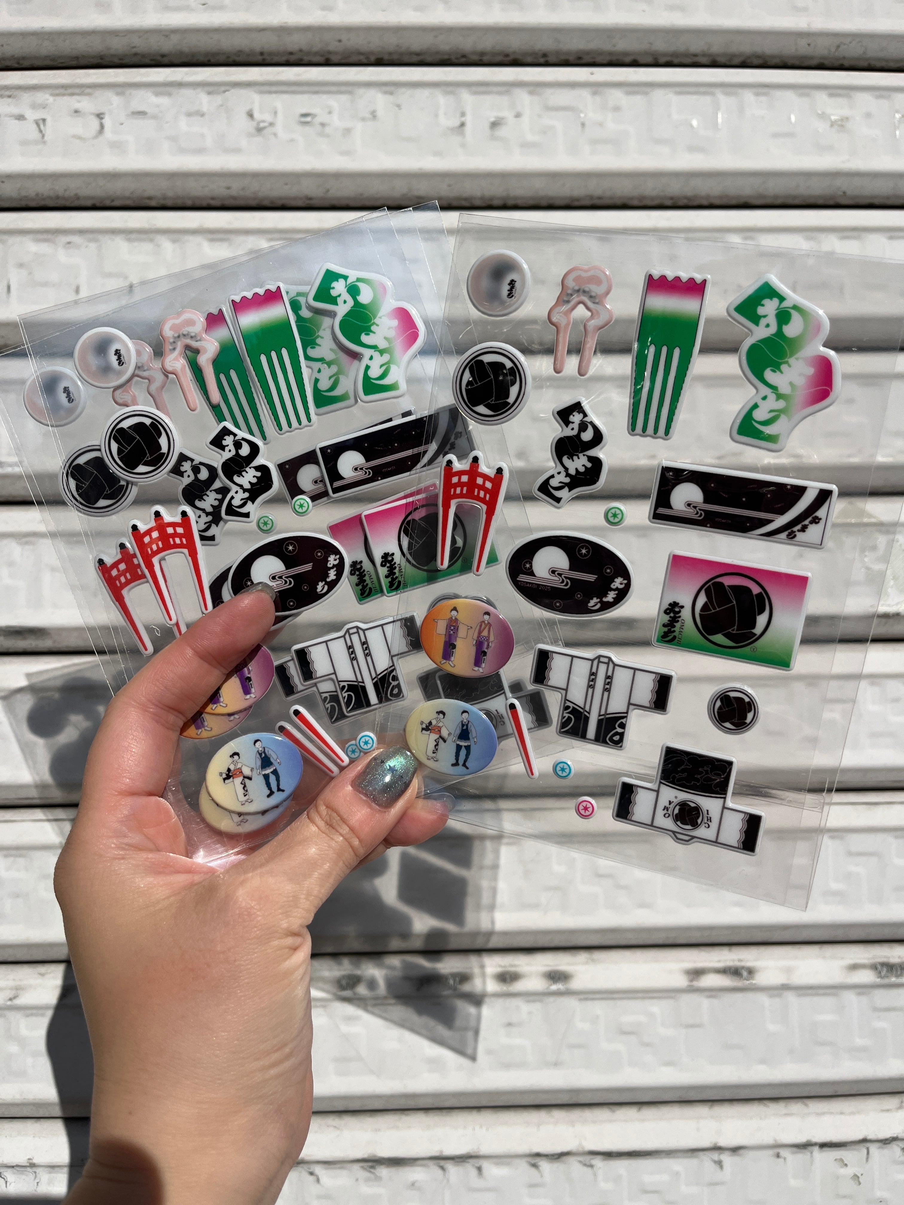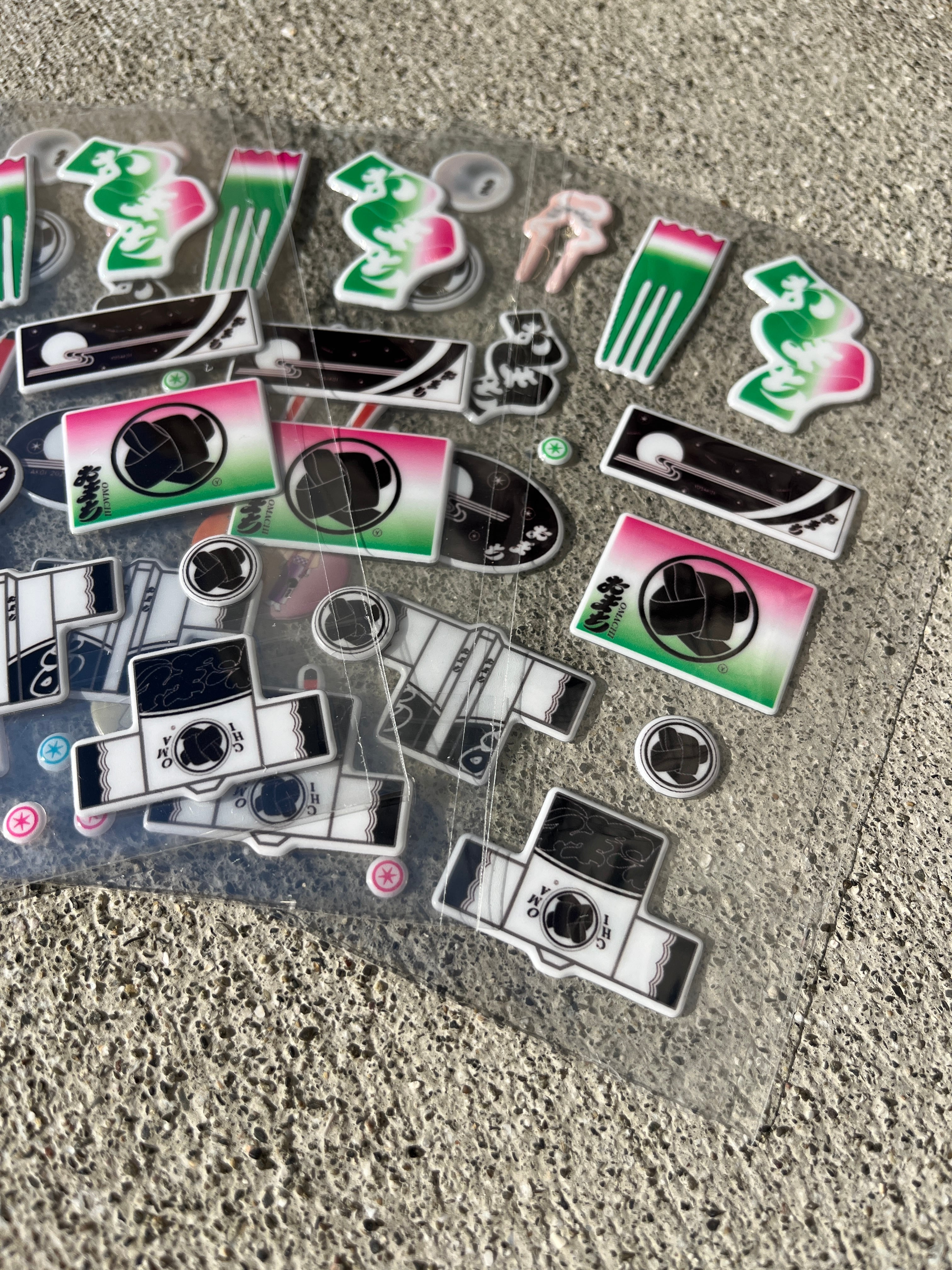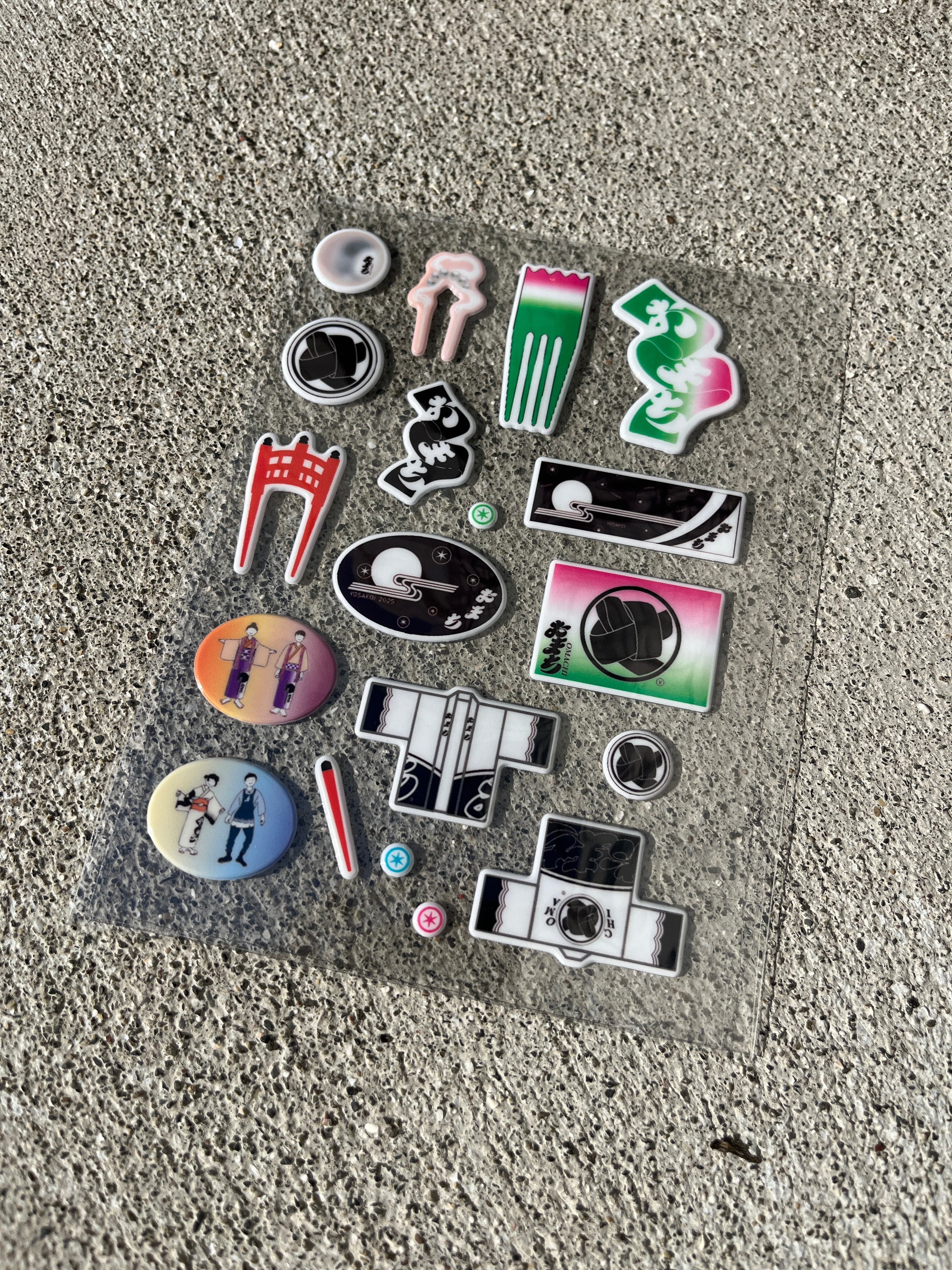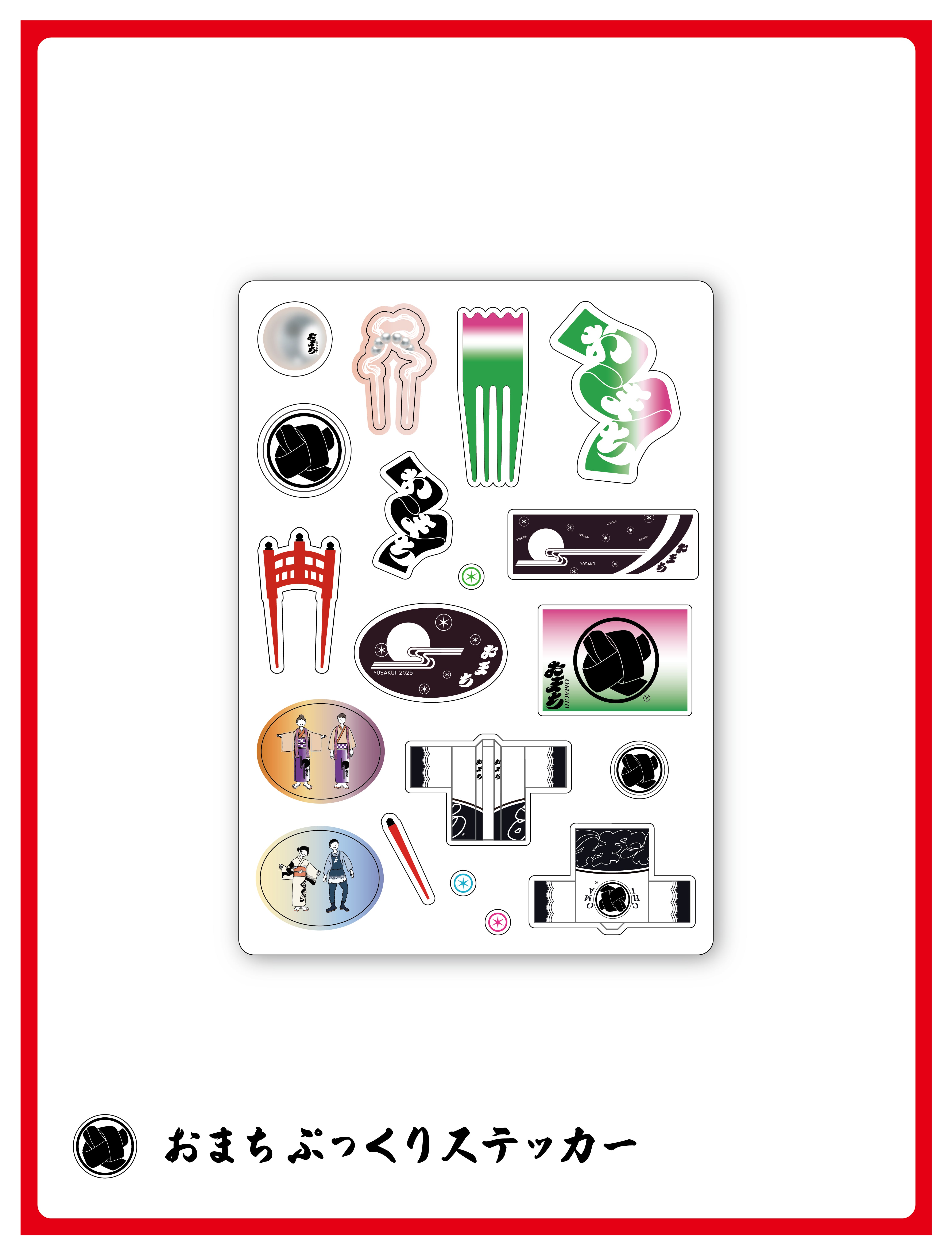 おまちに関するモチーフをたくさん詰め込んだぷっくりシールです。
